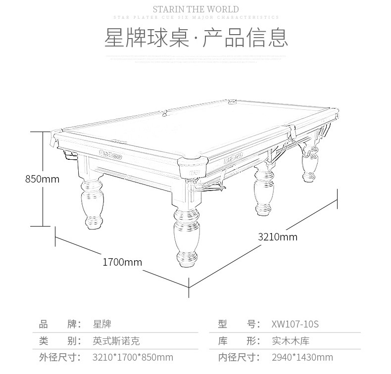 - 星牌 XW107-12S 英式斯諾克臺(tái)球桌
