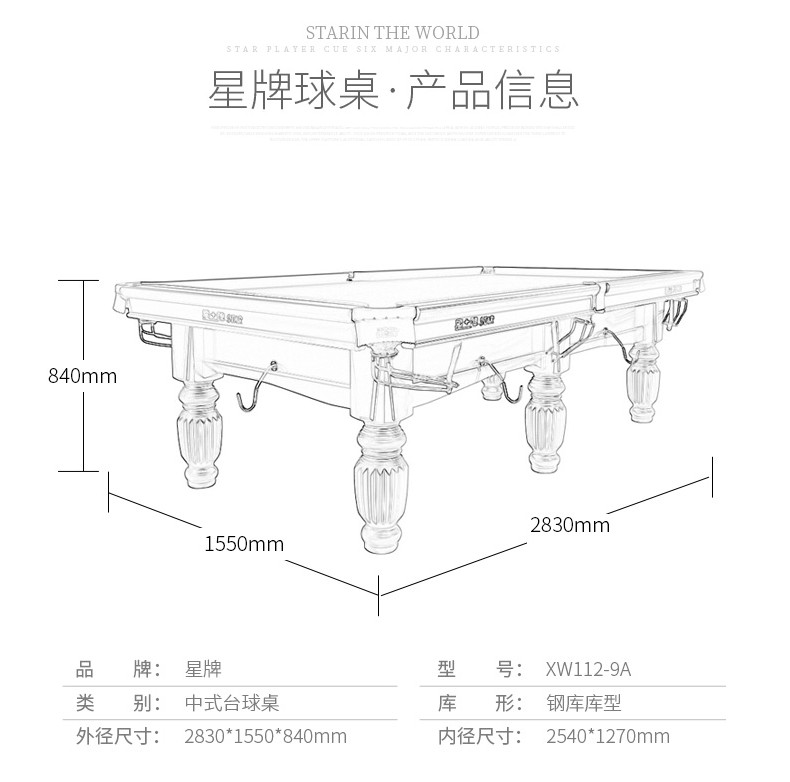 星牌 XW112-9A 美式臺球桌