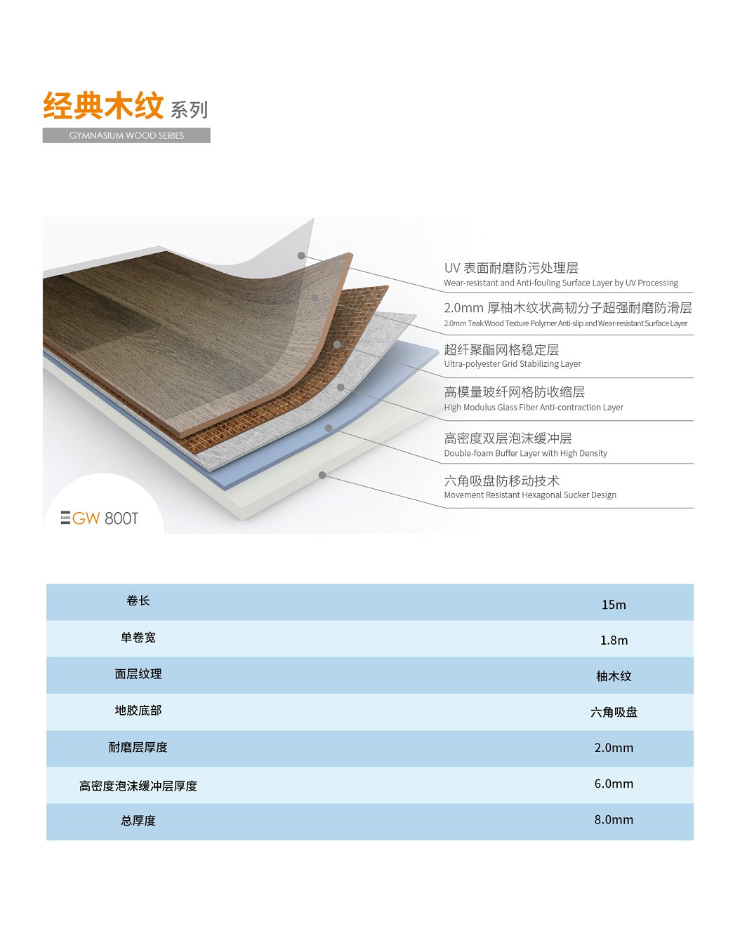 天速綜合地膠籃球場地膠經(jīng)典木紋系列GW 800T柚木紋